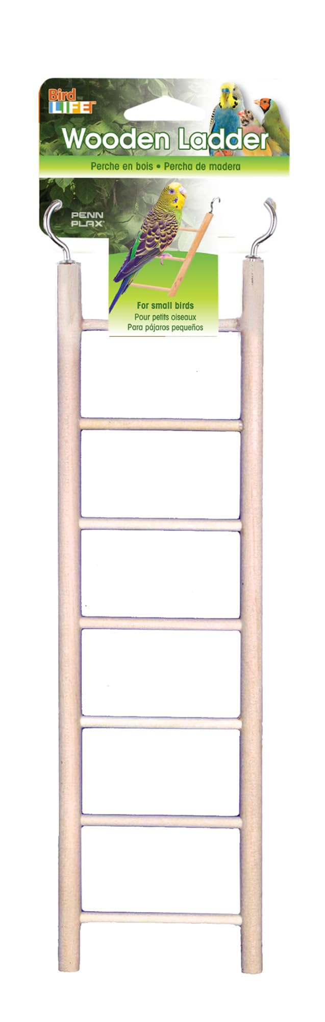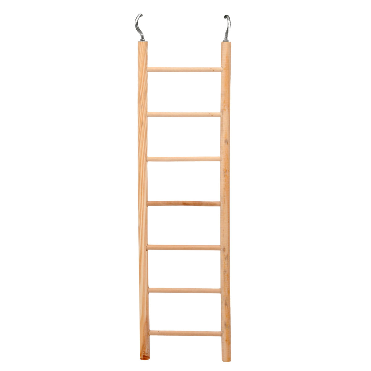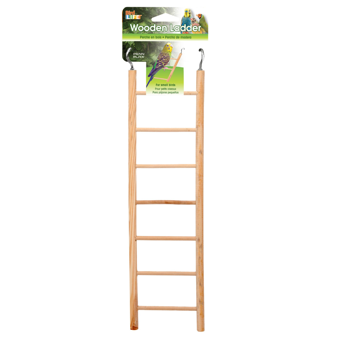 Wooden Bird Ladder. This is a 7 step ladder that adds a classic feel to your bird's cage. Includes metal hooks that make it easy to hang this ladder on all wired bird cages.
