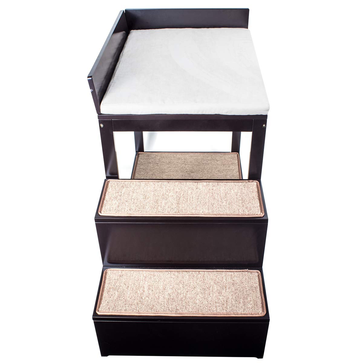Penn-Plax Presents The Buddy Bunk, An Innovative Piece Of Furniture Allows Your Pet To Sleep Next To Youwithout Taking Up The Whole Bed, Giving You Some Space To Enjoy.The Removable, Carpeted Steps Are Perfect For Older, Smaller, Or Infirm Dogs,Such As Those With Hip Dysplasia, Making It Easier For Them To Climb Up Onto Standard Sized Beds.Its Also A Great Choice For Pets That Weigh Up To 60 Lbs.Who Can Use The Buddy Bunk?*Older Dogs Who Don'T Have The Same Leaping Ability As When They Were Younger*Dogs With Hip Dysplasia Or Other Leg Conditions*Smaller Breeds, Like A Yorkie, Bichon Frise, Maltese, Pug, Or Chihuahua*Does Your Pet Whimper At The Side Of Your Bed Until You Pick Her Up?*Do You Have An Incredibly Stubborn Rescue Beagle Named Milky, Who Manages To Take Up 60% Of The Bed, Despite Weighing At Most 26 Lbs. (Maybe 27 Around The Holidays)?Multiple Levels For Convenience:The Buddy Bunk Features 2 Resting Spaces: One On Top And The Other On Bottom.In Addition To Giving Your Pet A Choice Where Theyd Like To Rest,Having 2 Spaces Grants More Freedom For 2 Pets Who May Wish To Sleep Separately.Furthermore, You Can Even Use The Bottom Space As Extra Storage Space.You Choose The Side That Faces Your Bed:The Safety Bolsters Can Be Positioned On Either Side Of The Buddy Bunk.This Feature Prevents Your Pet From Falling Off The Top Bunk,Along With Allowing You The Option Of Placing The Buddy Bunk To The Right, Left, Or Front Side Of Any Bed.Measurements:The Overall Measurements Are 20 (Width) X 43.75 (Length) X 29 (Height)The Piece With Both Resting Spaces Is 20 (Width) X 28 (Length) X 29 (Height)The Steps Are Together And Measure 20 (Width) X 15.75 (Length),And Have A 8 Rise In Height Per Each Step*Please See Included Pictures.