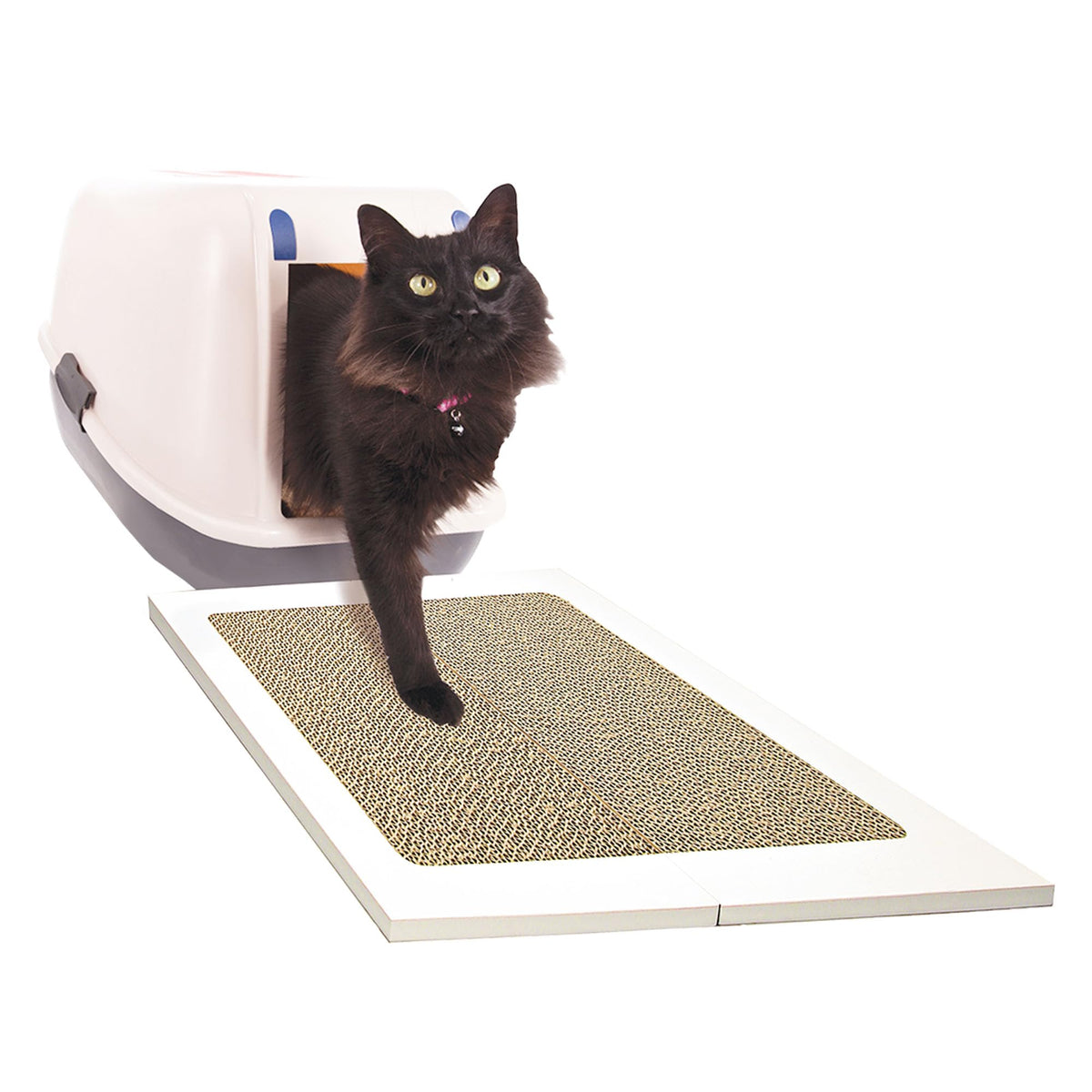 Q: How does the scratching pad help with litter tracking?A: This scratching pad can be placed next to the litter box, allowing it to catch stray litter crumbs that may fall from your cat's paws, helping to keep your floors clean.