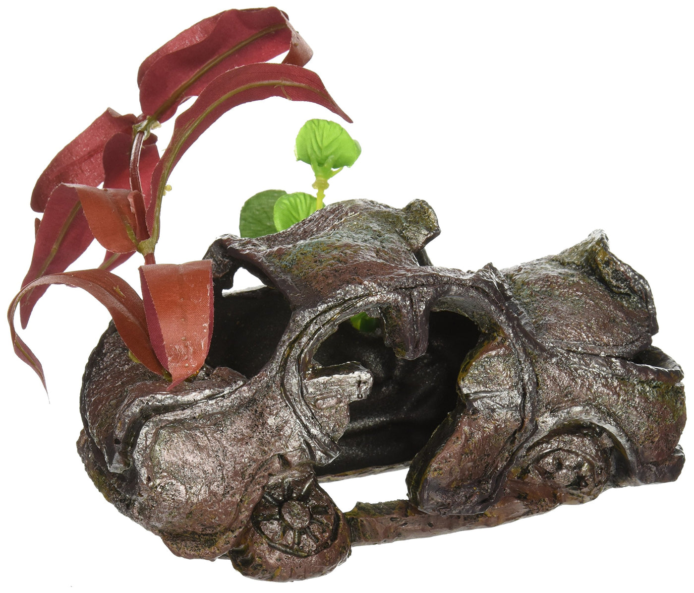Penn-Plax Sunken Car Wreck With Attached Plant – Aquarium And Fish Tank Décor - Small