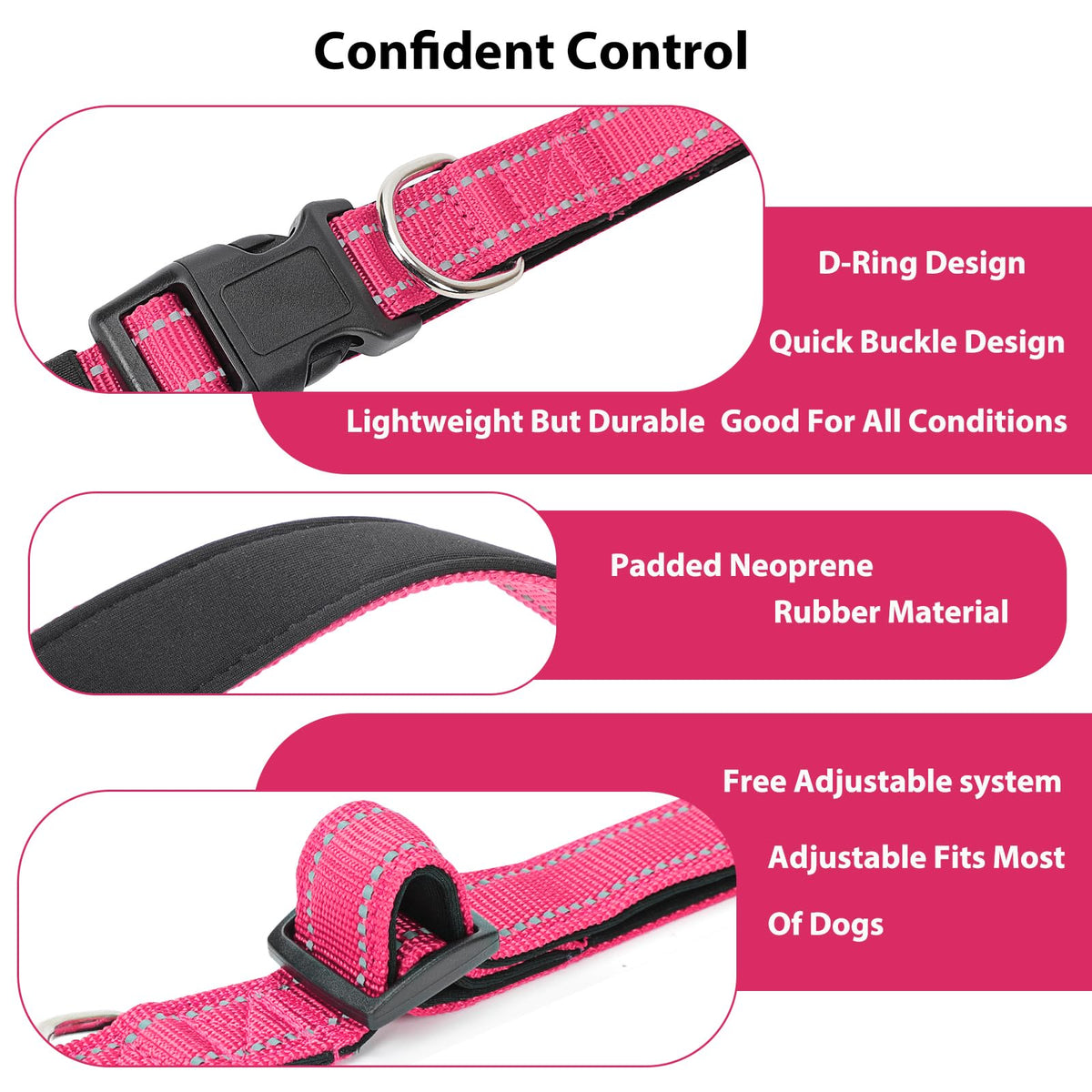 Penseepet Reflective Dog Collar Padded With Soft Neoprene Breathable Quick Release Basic Dog Collars For Medium Dogs Hot Pink Girl