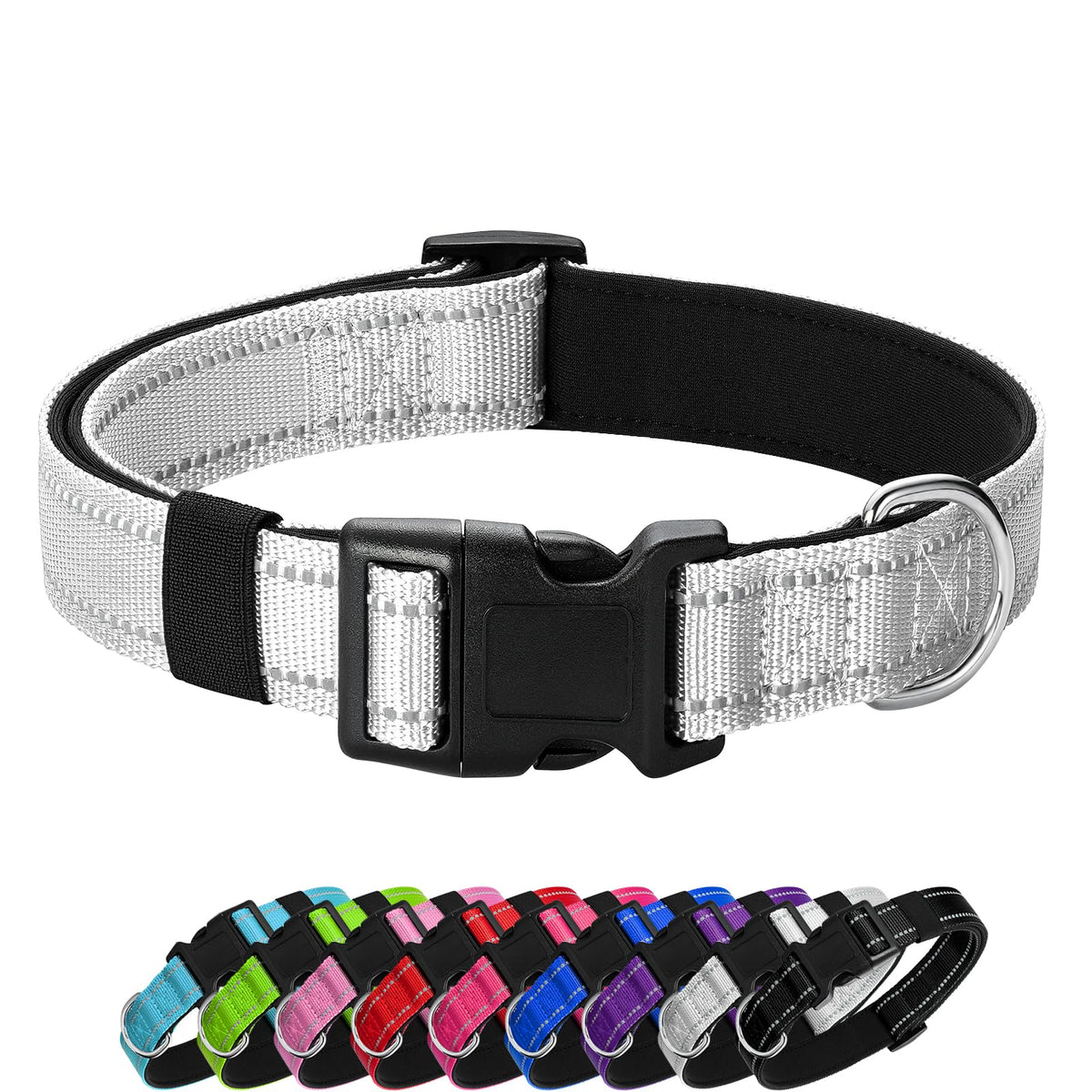 Penseepet Reflective Dog Collar Padded With Soft Neoprene Breathable Quick Release Basic Dog Collars For Medium Large Dogs Boy G