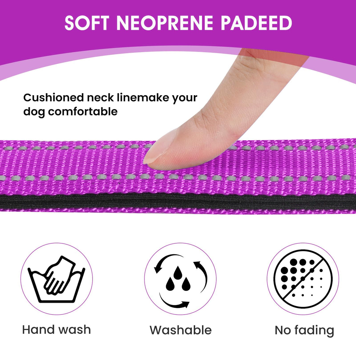 Penseepet Reflective Dog Collar Padded With Soft Neoprene Breathable Quick Release Basic Dog Collars For Medium Large Dogs Dark