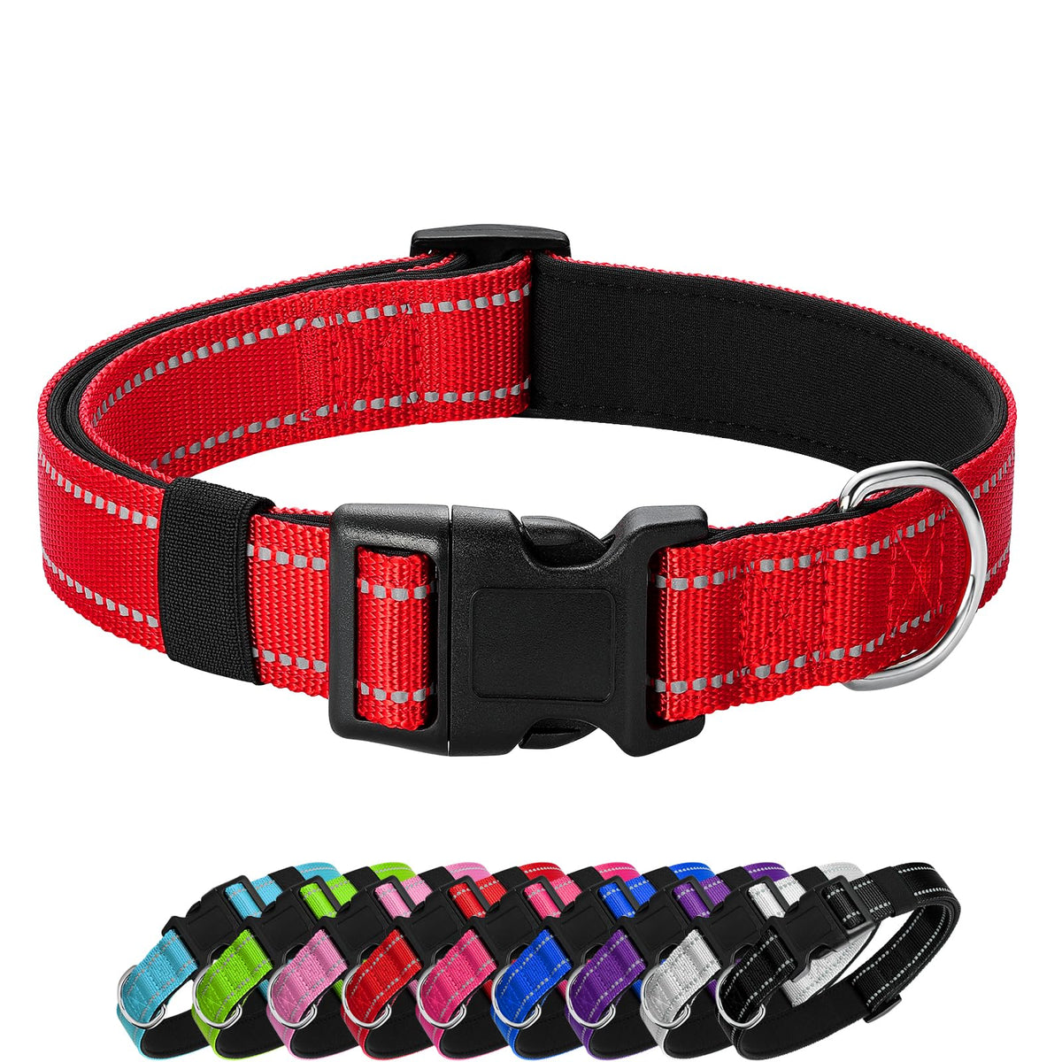 Penseepet Reflective Dog Collar Padded With Soft Neoprene Breathable Quick Release Basic Dog Collars For Medium Large Dogs Red B