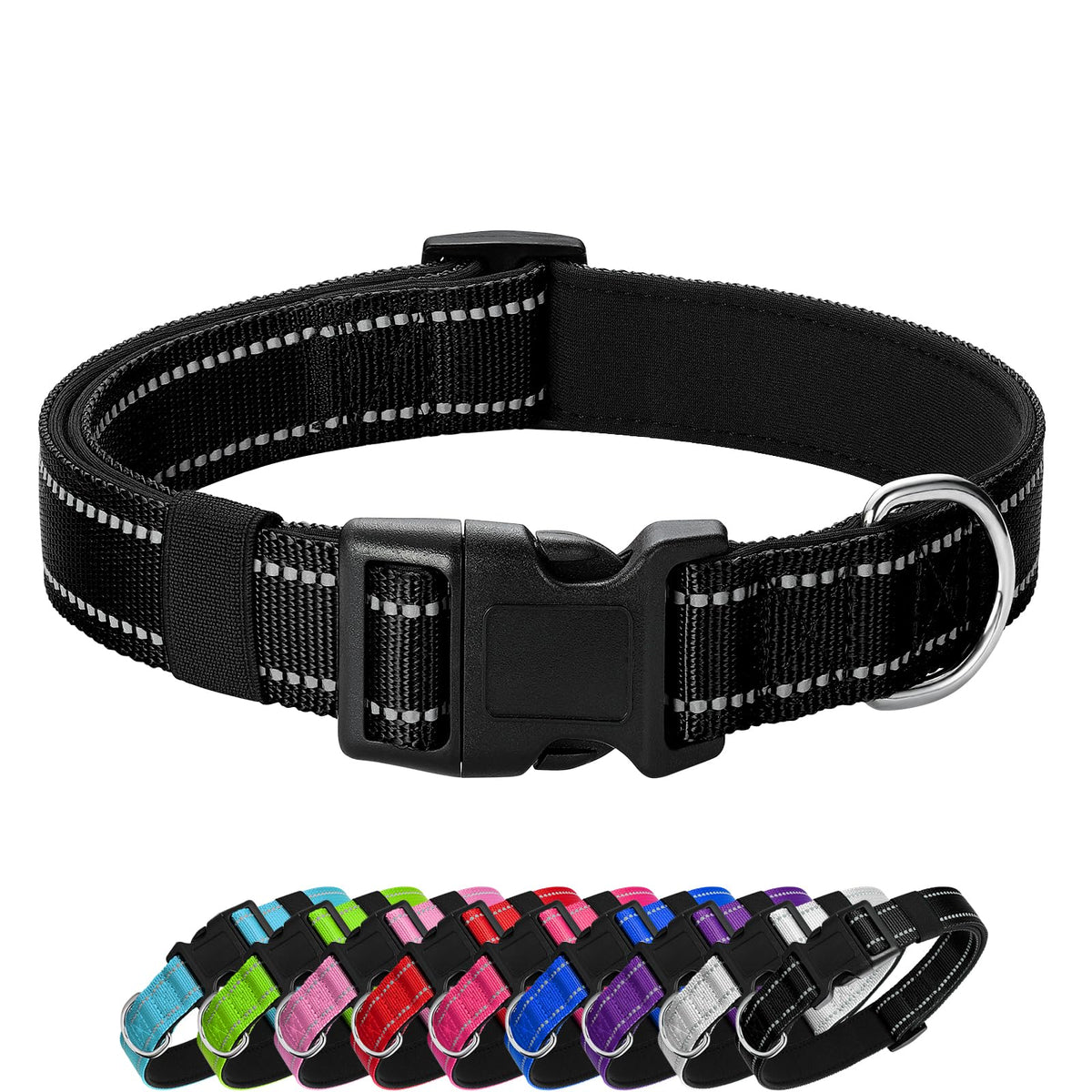 Q: Does the collar provide safety features for nighttime walks?A: Yes, the PenSeepet Reflective Dog Collar has highly reflective elements that enhance visibility at night. This feature helps keep your pet safe during evening walks, making it easier to spot them in low-light conditions.