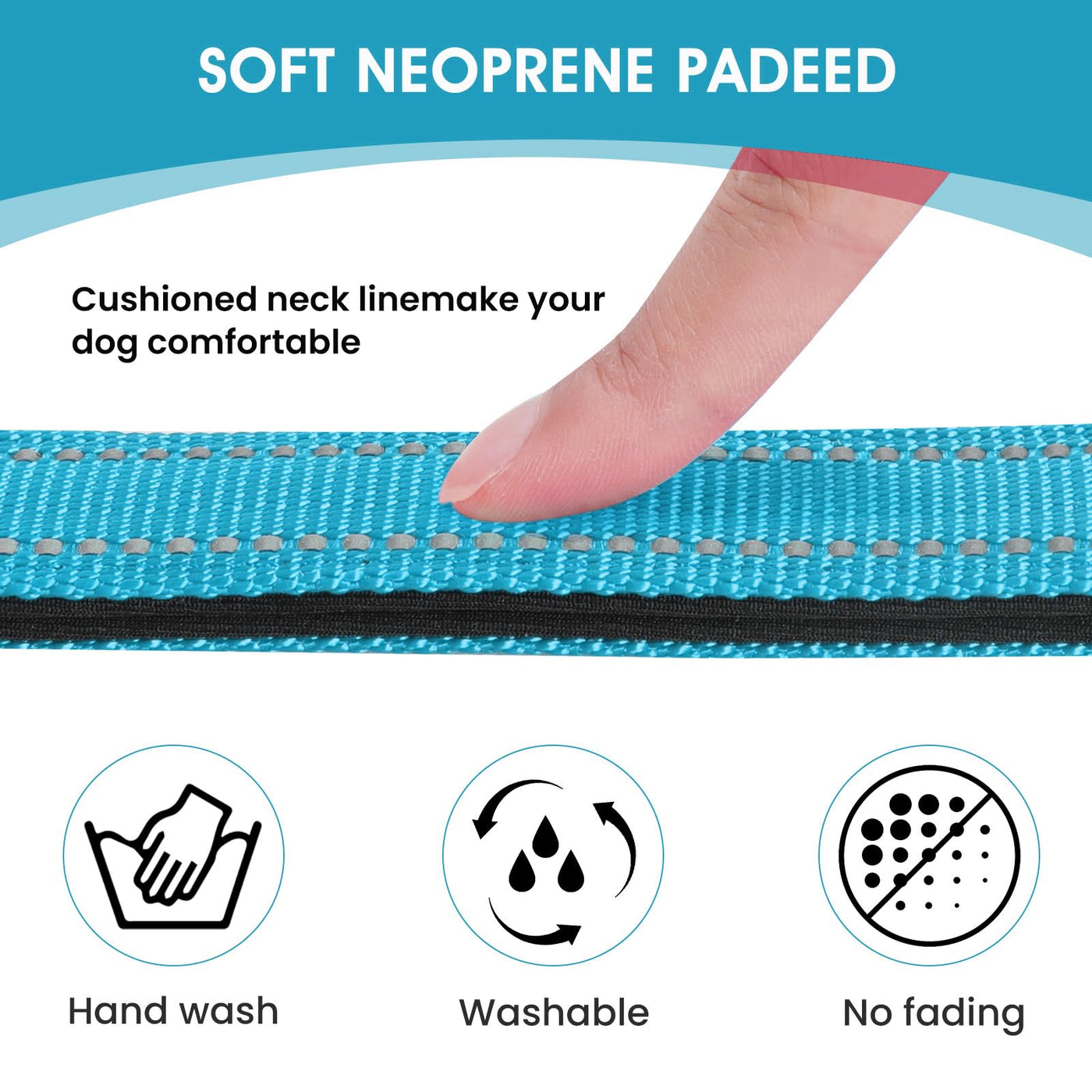 Penseepet Reflective Dog Collar Padded With Soft Neoprene Breathable Quick Release Basic Dog Collars For Puppy Small Dogs Sky Bl