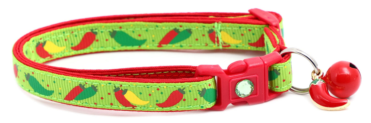 Pepper Cat Collar - Safety - Breakaway - Charm And Bell - Pugs2Persians (Large(10Lbs & Up), Green)