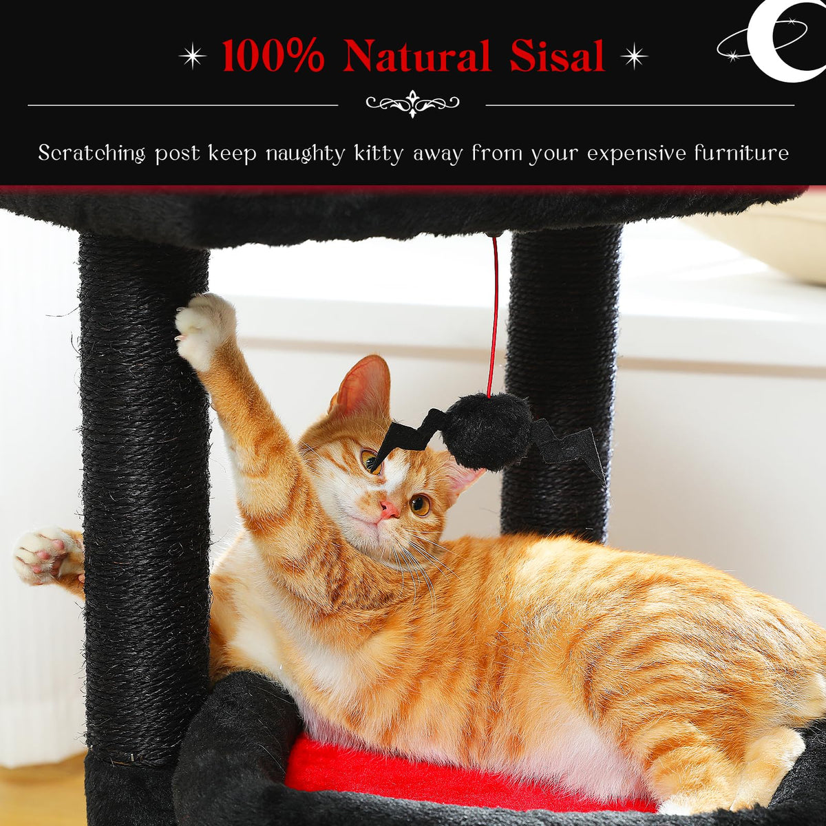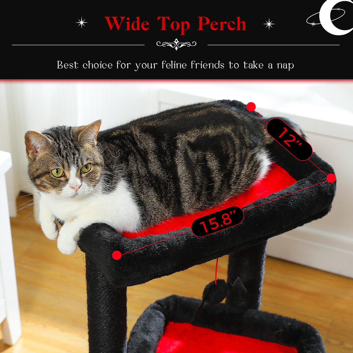SUPERIOR QUALITY: composed by high quality cARB-certified Board and plush fabric the condo and perches are very soft and comfortable your furry family members will love the plush touch and enjoy exploring and sniffing around its new home Reinforced scratching posts are covered by natural sisal rope-one kind of healthy material which your cats will love because it feels a lot like scratching on tree bark cOZY AND WIDENED PERcH: 2 nicely cushioned and extra-large cat perch(213*157) with raised edge offers prime relaxing spot for your fur babies to lie down or sit on to look out the window The top perch is designed big enough to hold 2 kittens at the same time so that these 4 good friends can enjoy a nice sleeping or playtime together MORE FUN AND cOMFORT: A spacious and soft condo allows your cats to have a sweet dream after meal or heshe can choose the plush perch to have a short nap meanwhile enjoy the sunshine or outside scenery 4 straight scratching posts fully wrapped by sisal ropes provide plenty and healthy room to let your cats to sharpen their nails a feline favorite While the dangling ball is replaceable and will bring your cats extra fun SAFE AND STABLE: Reinforced base plate and well-balanced design make sure your cats can easily and safely leap on or off this small but sturdy cat tree EASY TO ASSEMBLE AND NIcE LOOKINg: Its attractive look will match with any room in your house like a piece of nice pet furniture rather than a jungle gym All the necessary tools are included just following the instruction step by step ItAs super easy to set it up The top cover is removable for easy care