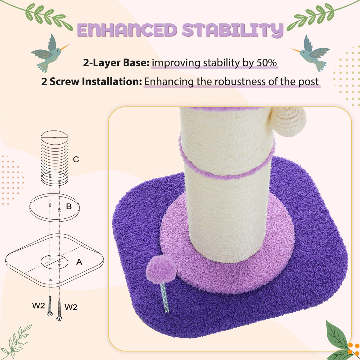 SUPER THICK POST: The natural sisal covered post's diameter reaches to 5.5'' that is larger than almost 80% cat scratcher at the market ensuring a large area for your cats to fulfill their daily scratching needs. Besides this thick post double secure the stability of the whole cat scatcher efficiently keep your baby away from your expensive furniture