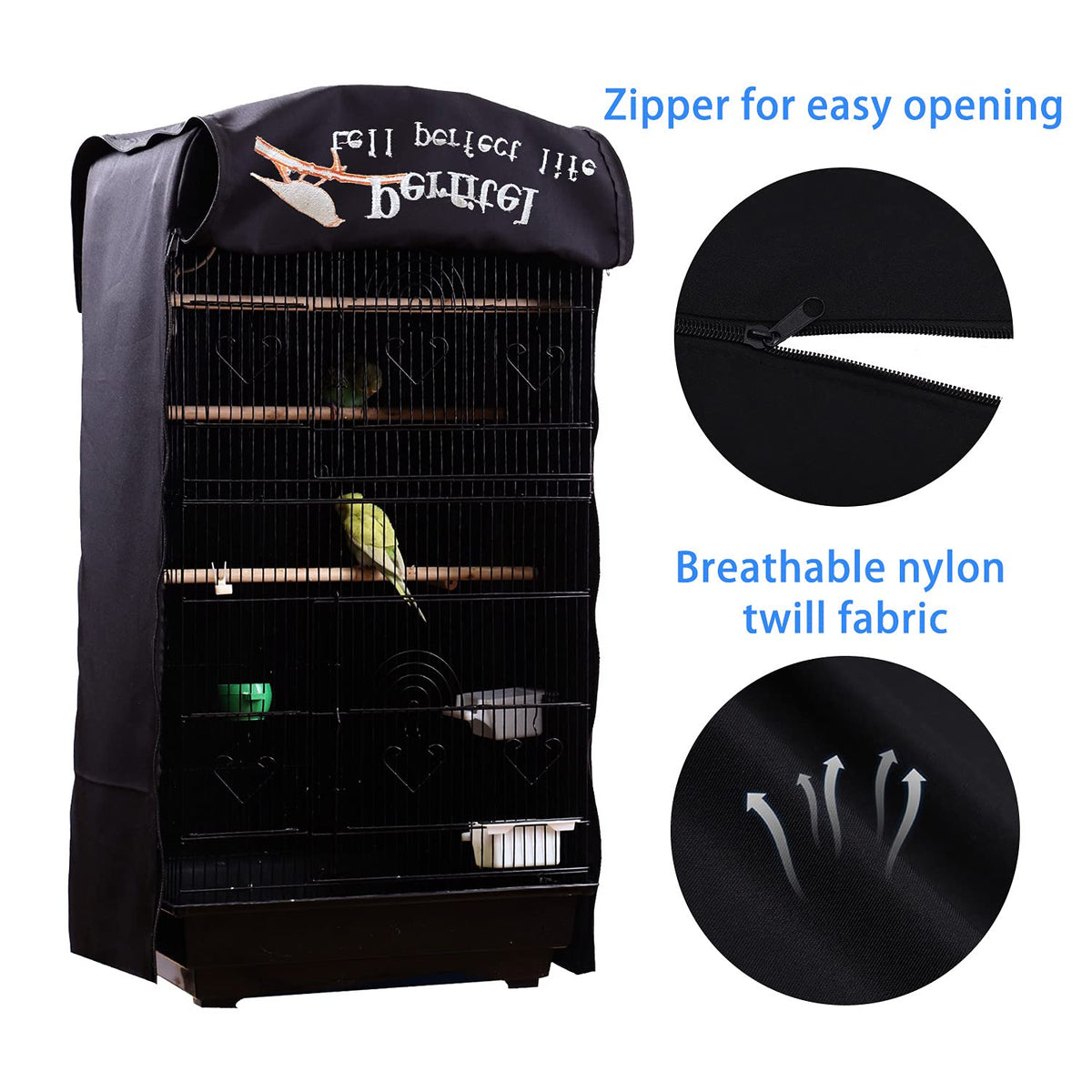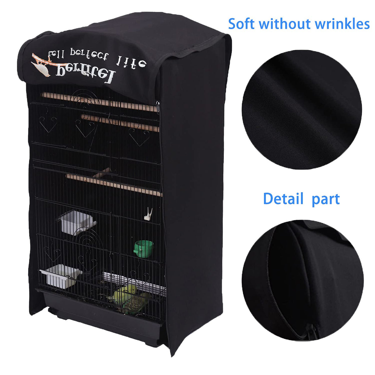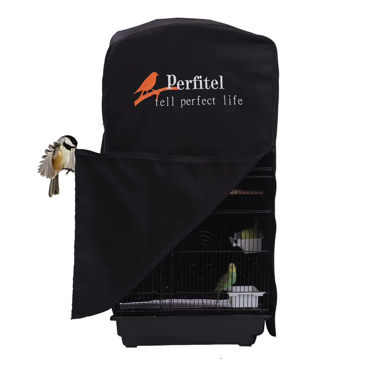 Perfitel Bird Cage Cover(Black) Good Night Birdcage Cover Black-Out Birdcage Cover Durable Breathable Washable Material (18.1Lx1