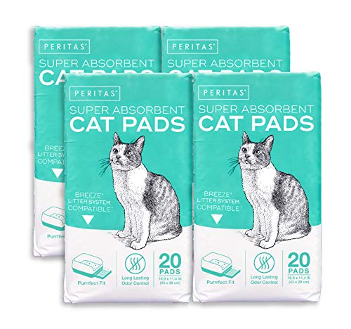 Q: What size are the Peritas Cat Pads, and will they fit my Tidy Cat Breeze Litter Box?A: The Peritas Cat Pads measure 16.9 inches by 11.4 inches, making them a perfect fit for the Tidy Cat Breeze Litter Box and similar sized litter systems.
