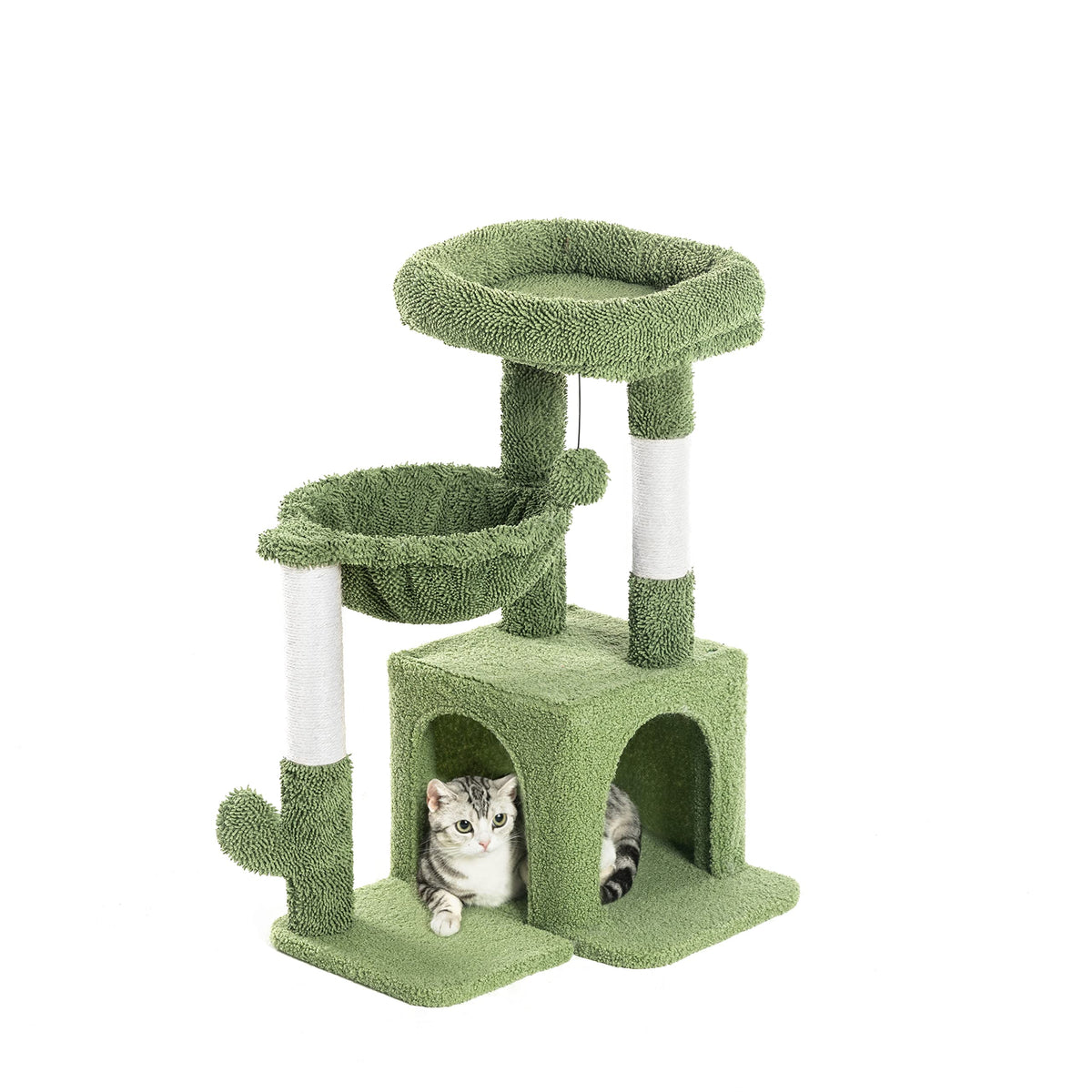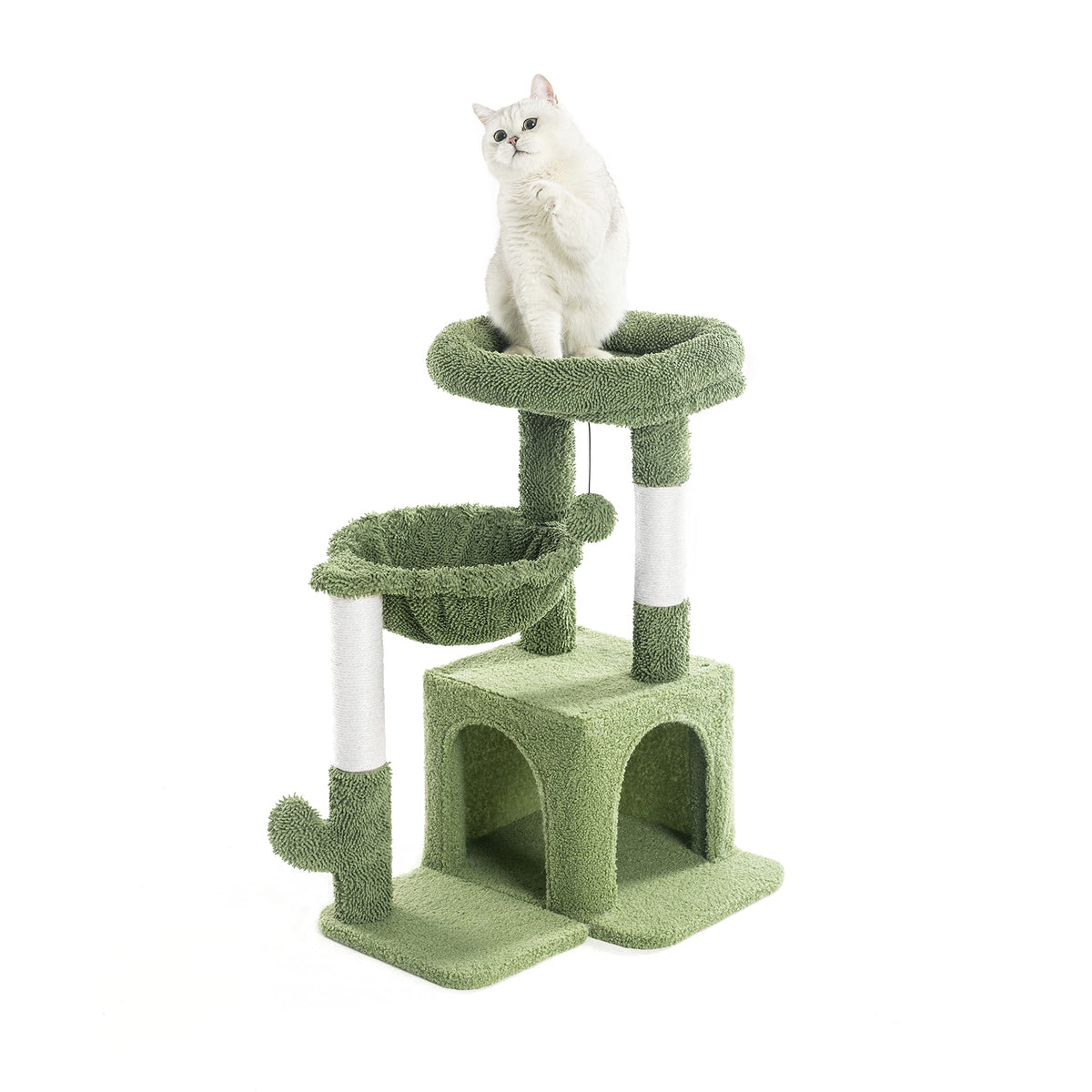 Pesofer Cactus Cat Tree, Small Cat Tower With Sisal Scratching Post And Hammock Green