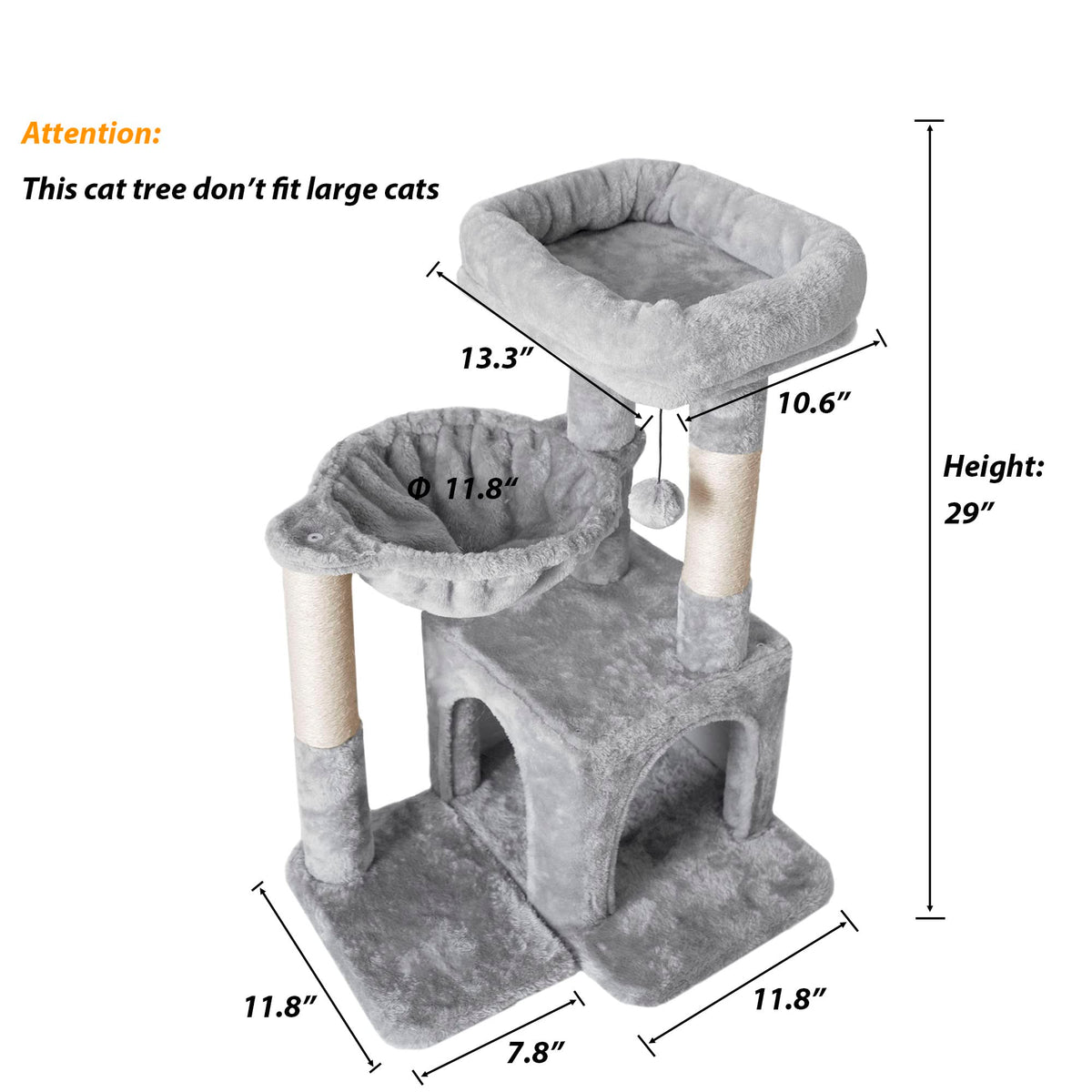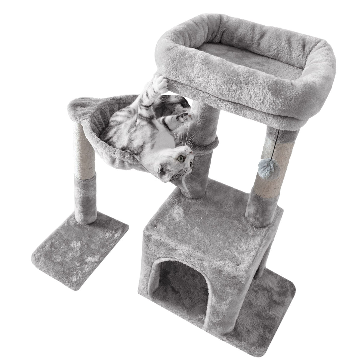 Pesofer Cat Tree, Small Cat Tower With Sisal Scratching Post And Hammock Light Gray