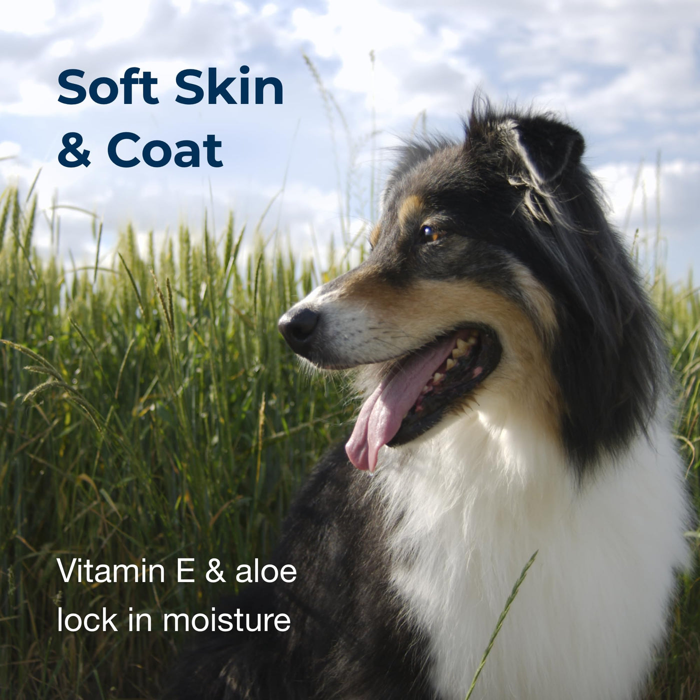 Q: What are the main benefits of using Pet-Ag Fresh ‘n Clean Good Sport Deodorizing Shampoo for Dogs?A: Pet-Ag Fresh ‘n Clean Good Sport Deodorizing Shampoo offers a powerful odor-control formula that effectively removes tough smells while being gentle on your dog's skin. It contains aloe vera and vitamin E to moisturize and maintain a shiny coat, and it is soap-free and paraben-free, making it safe for sensitive skin.