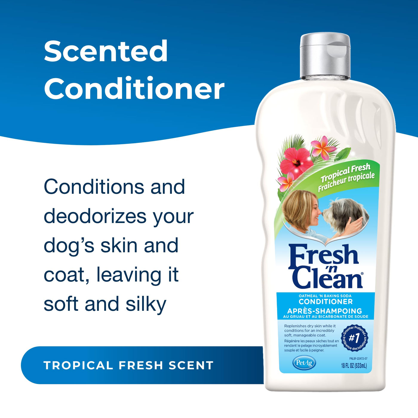 SOAP-FREE DOG CONDITIONER - Gently cleanse, soothe & deodorize dogs after shampooing with Fresh ’n Clean Oatmeal ’n Baking Soda Conditioner. The natural, pure oat flour formula delivers relief to dogs experiencing sensitive, itchy, or irritated skin. | LOCKS IN MOISTURE - Oatmeal, baking soda, vitamin E, and aloe vera produce a shimmering coat that’s soft to the touch. Plant-based conditioning agents moisturize the skin and coat. It also eliminates mats and tangles to reduce breakage. | LONG-LASTING SCENT - Our signature Tropical Fresh scent keeps your dog smelling fresh. | HOW TO USE - Shampoo and rinse thoroughly. Pour conditioner along your dog's back. Work conditioner into coat, adding more if needed. Rinse thoroughly. | ABOUT US - Pet-Ag offers solutions to enrich the lives of animals & their caregivers. From nutritional supplements to grooming products, all our products are science-backed, formulated with high-quality ingredients, and supported by quality control.