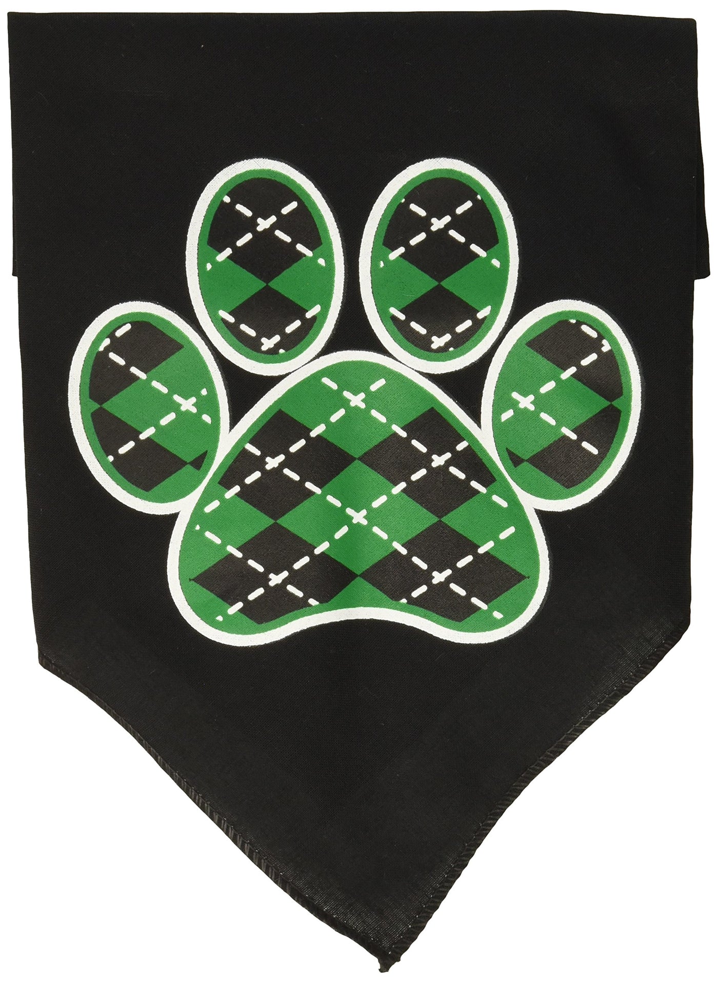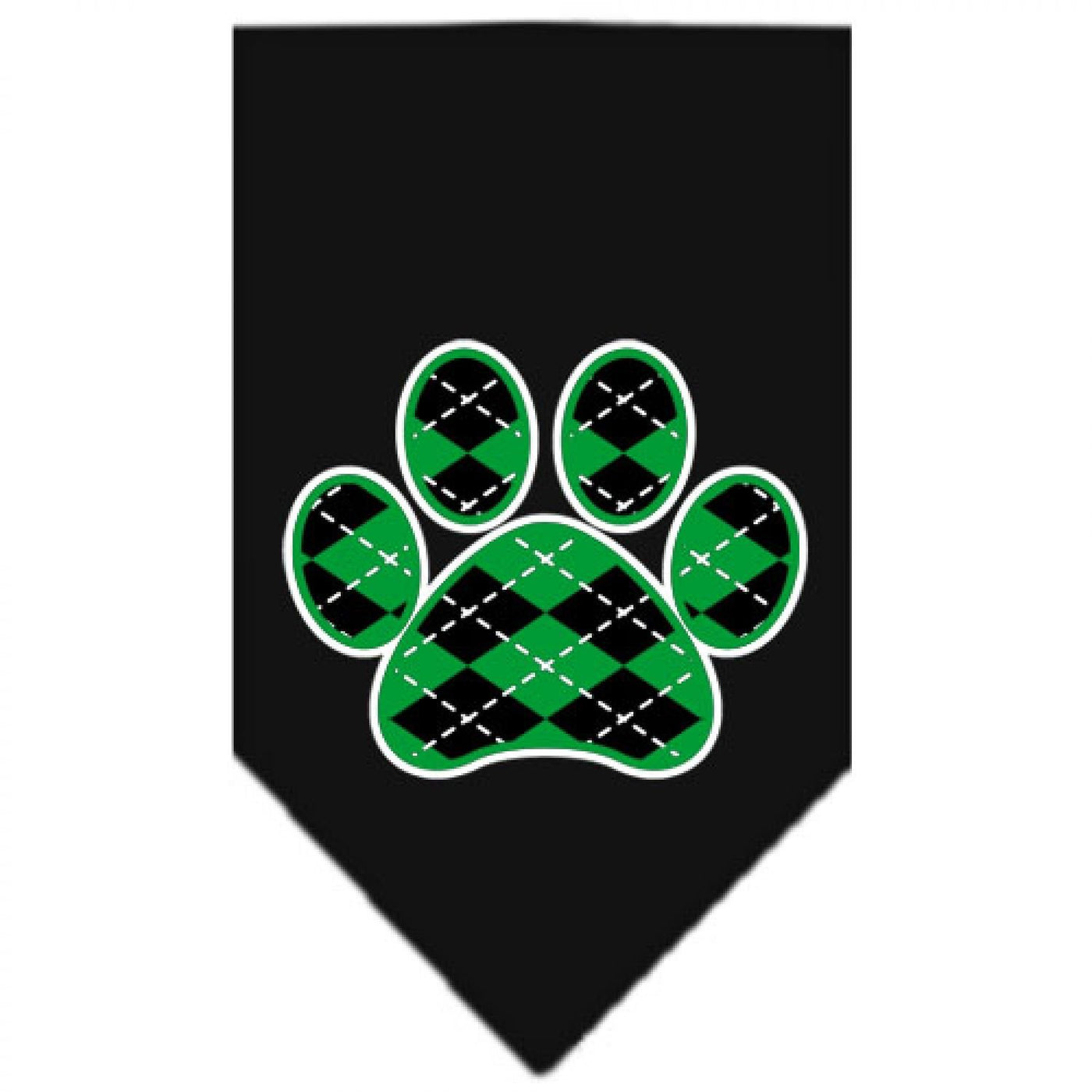 Pet and Dog Bandana Screen Printed, Green Argyle Paw Black Large