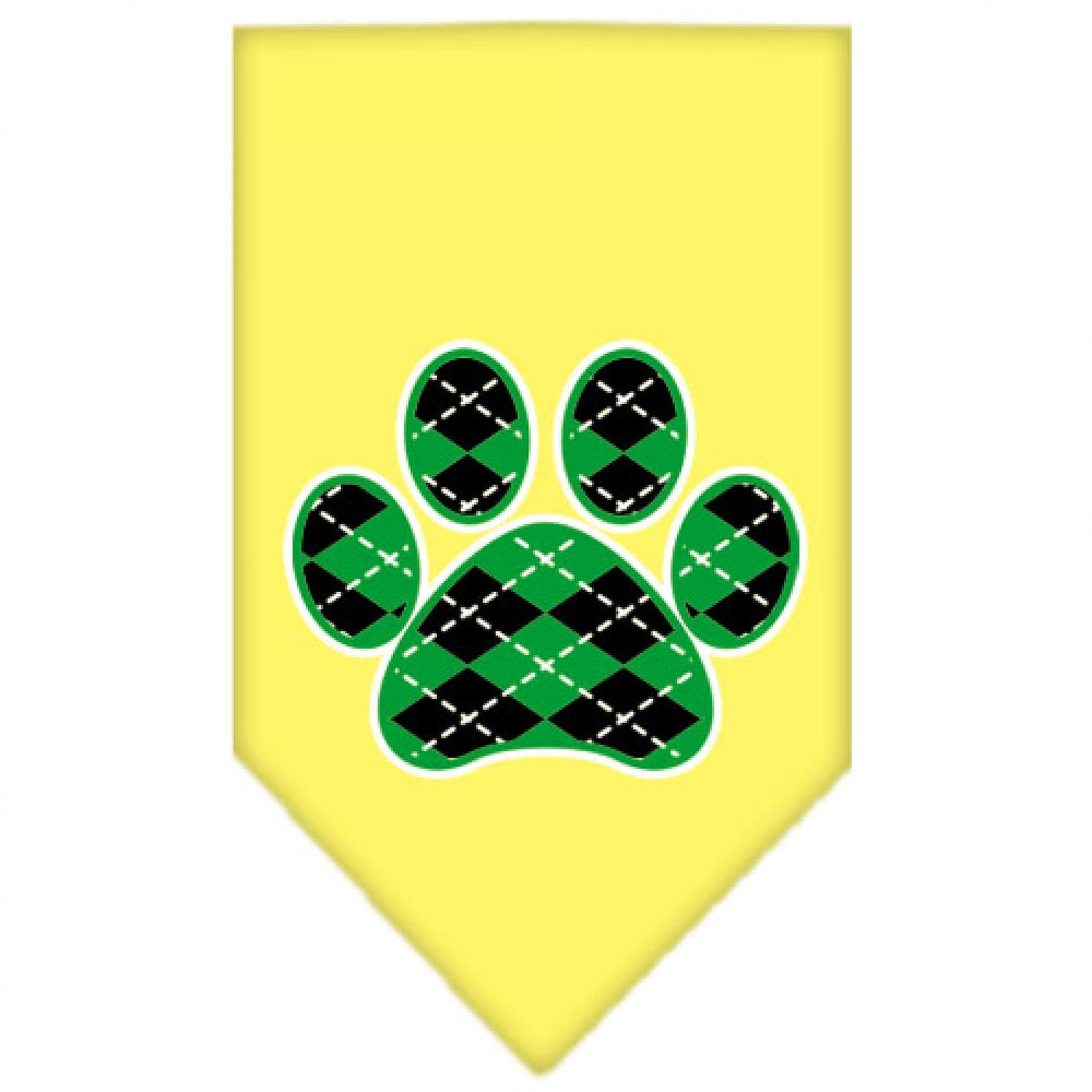Pet and Dog Bandana Screen Printed, Green Argyle Paw Yellow Small