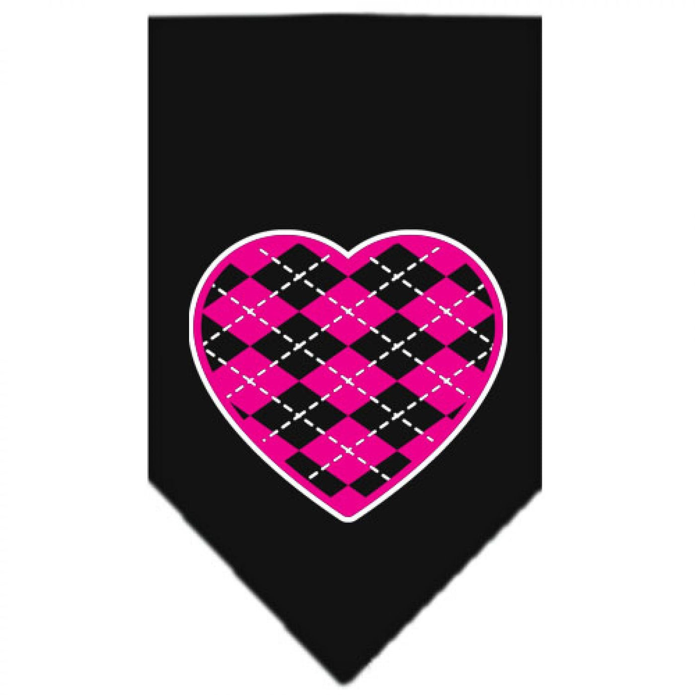Pet and Dog Bandana Screen Printed, Pink Argyle Heart Black Large