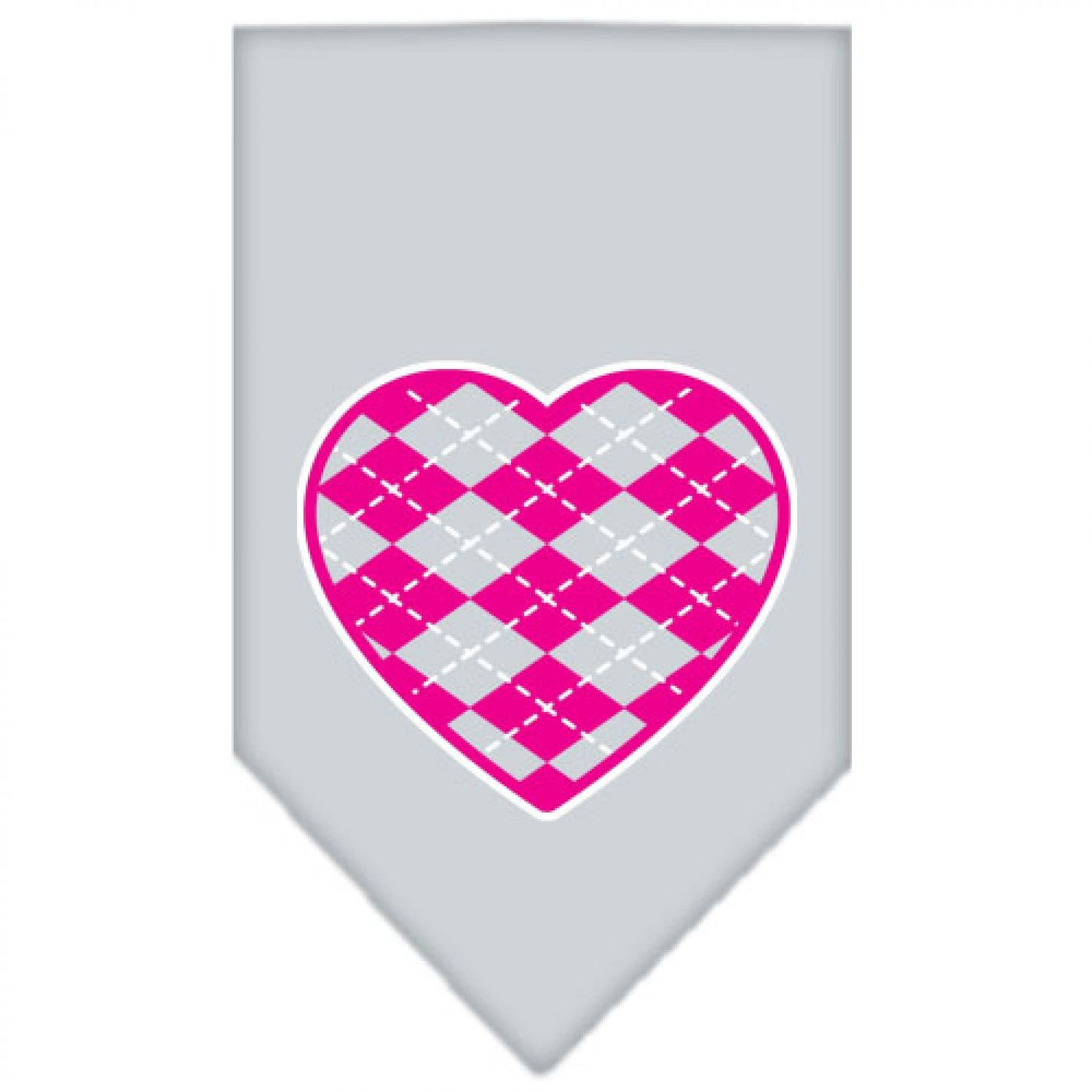 Pet and Dog Bandana Screen Printed, Pink Argyle Heart Grey Large