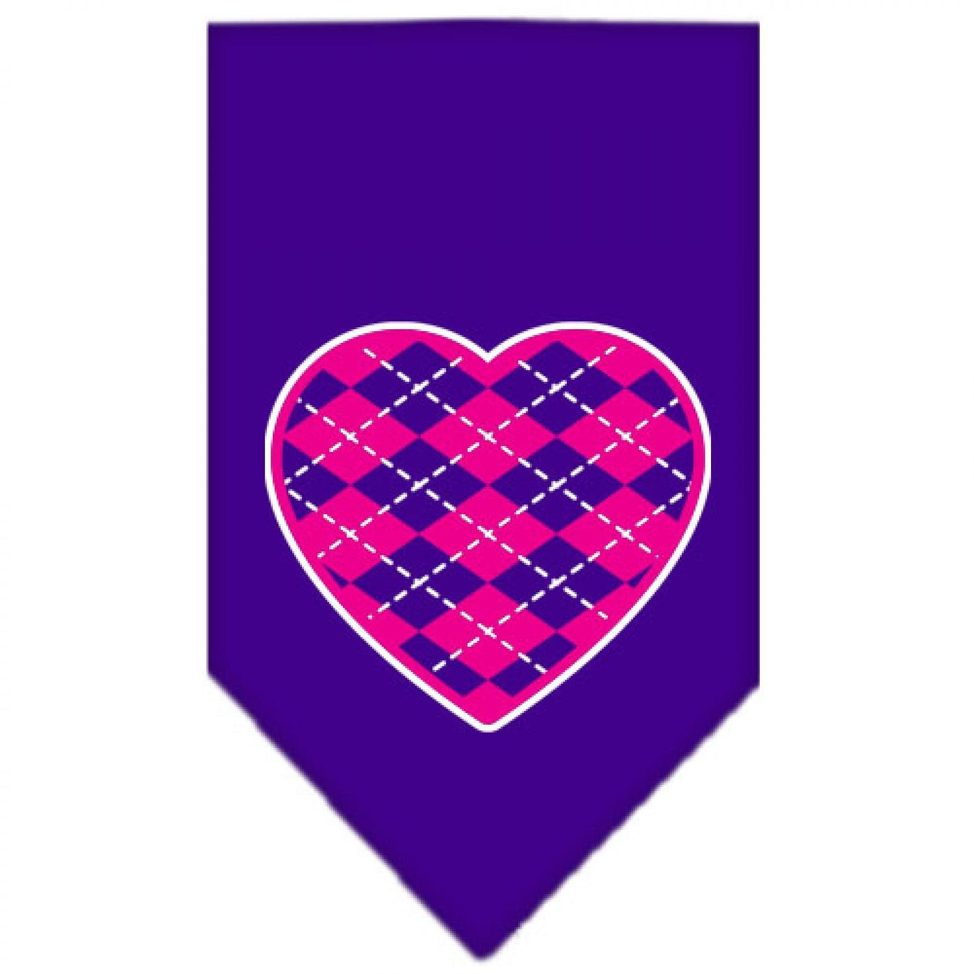 Pet and Dog Bandana Screen Printed, Pink Argyle Heart Purple Large