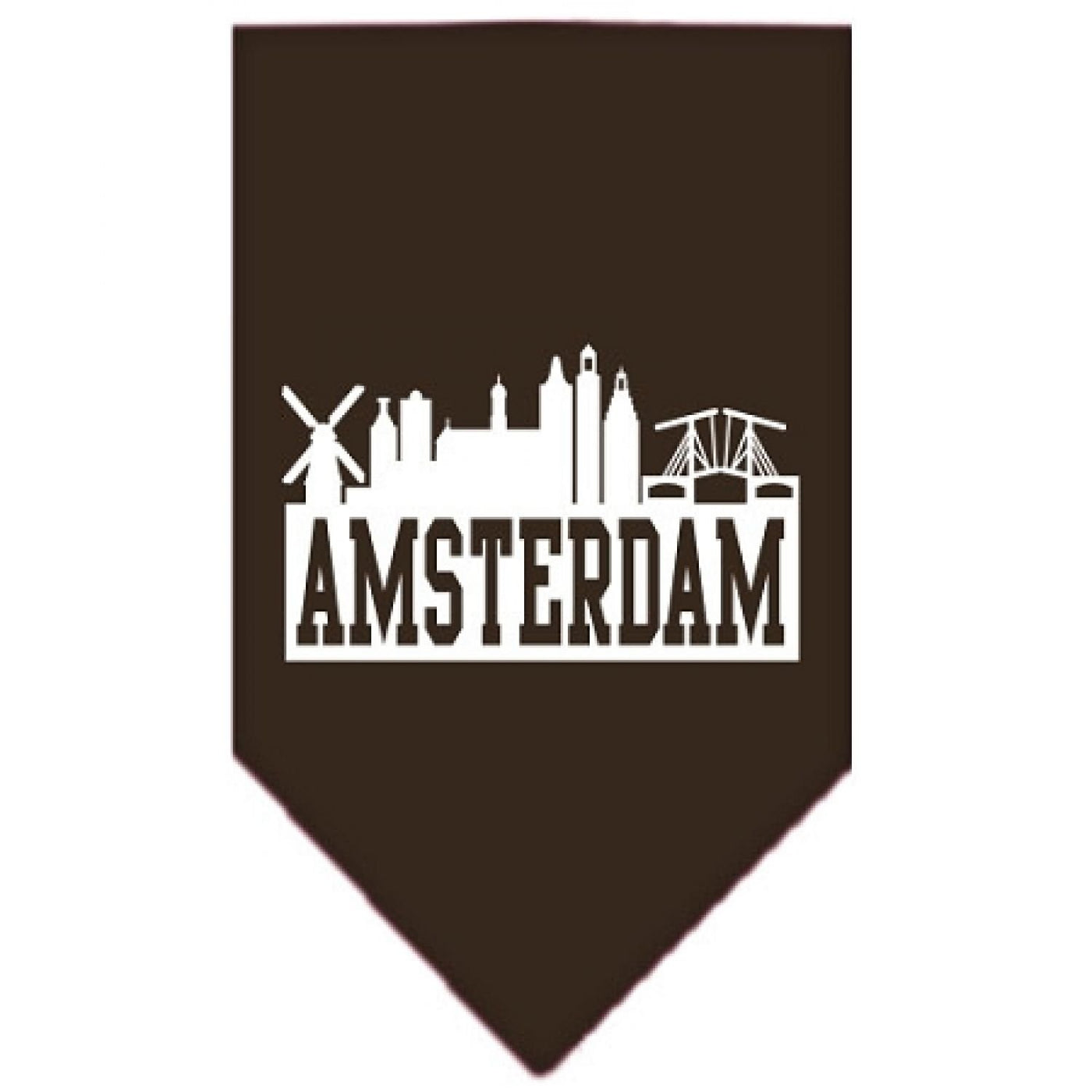 Pet and Dog Bandana Screen Printed, "Amsterdam Skyline" Cocoa Large