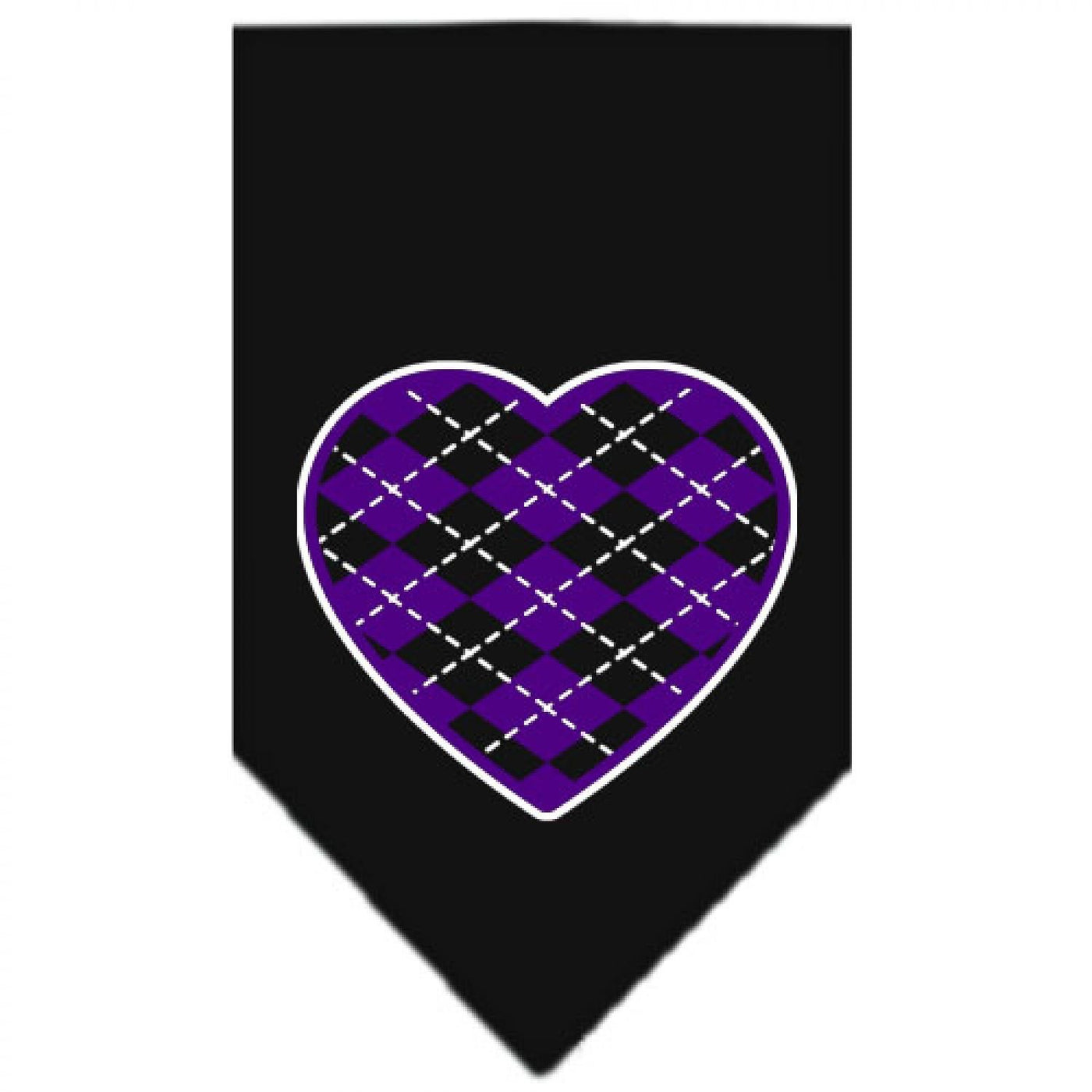 Pet and Dog Bandana Screen Printed, "Argyle Heart Purple" Black Small
