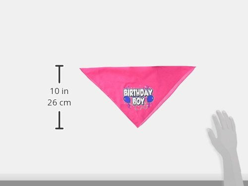 Q: What unique features does this bandana offer for my pet's birthday celebration?A: This bandana features a bright pink color with screen-printed designs that celebrate your pet's birthday, making it a fun and stylish accessory for any birthday party.