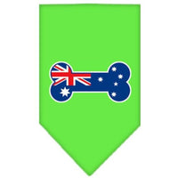 Pet and Dog Bandana Screen Printed, "Bone Shaped Australian Flag" Lime Green Small