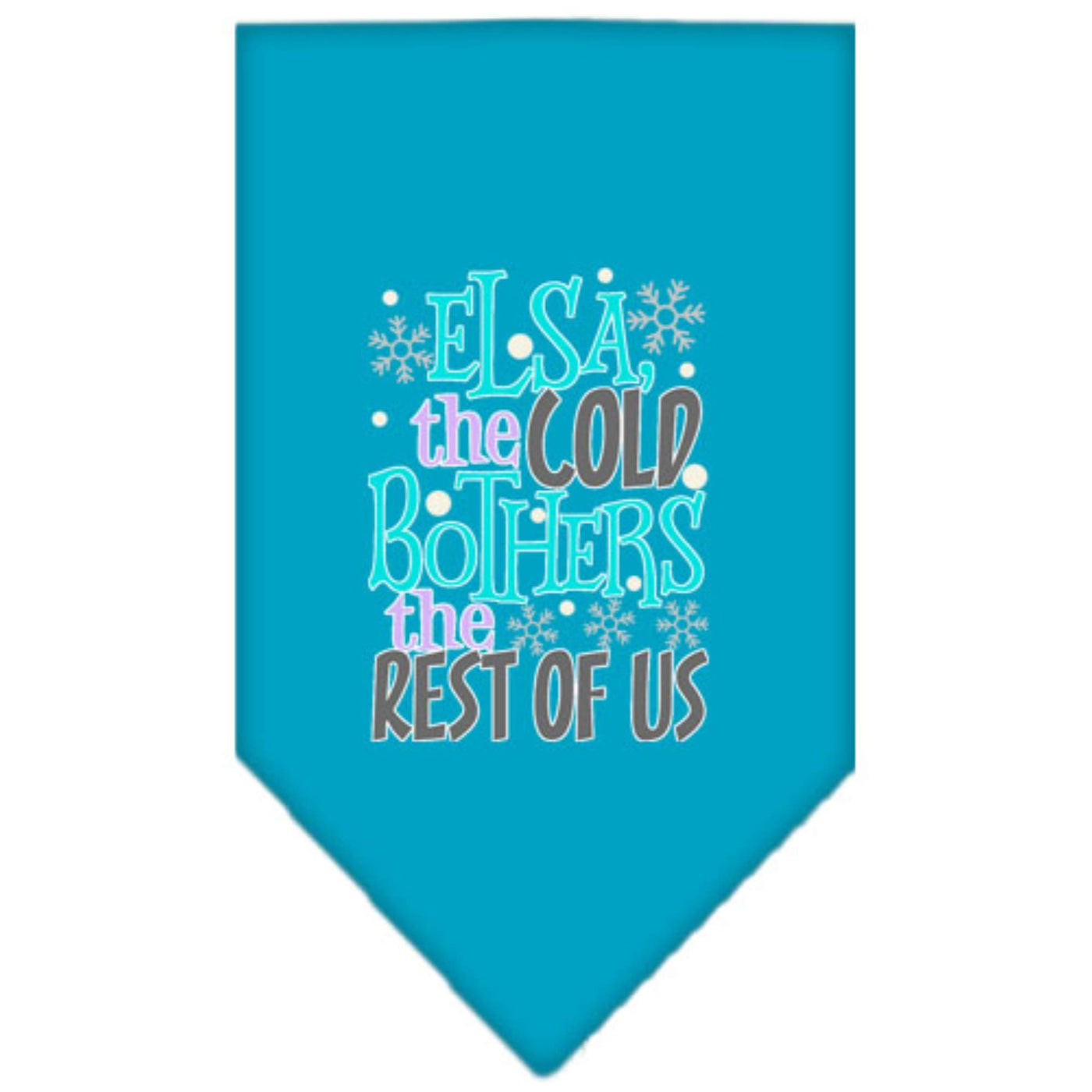 Pet and Dog Bandana Screen Printed, "Elsa, The Cold Bothers The Rest Of Us" Turquoise Small