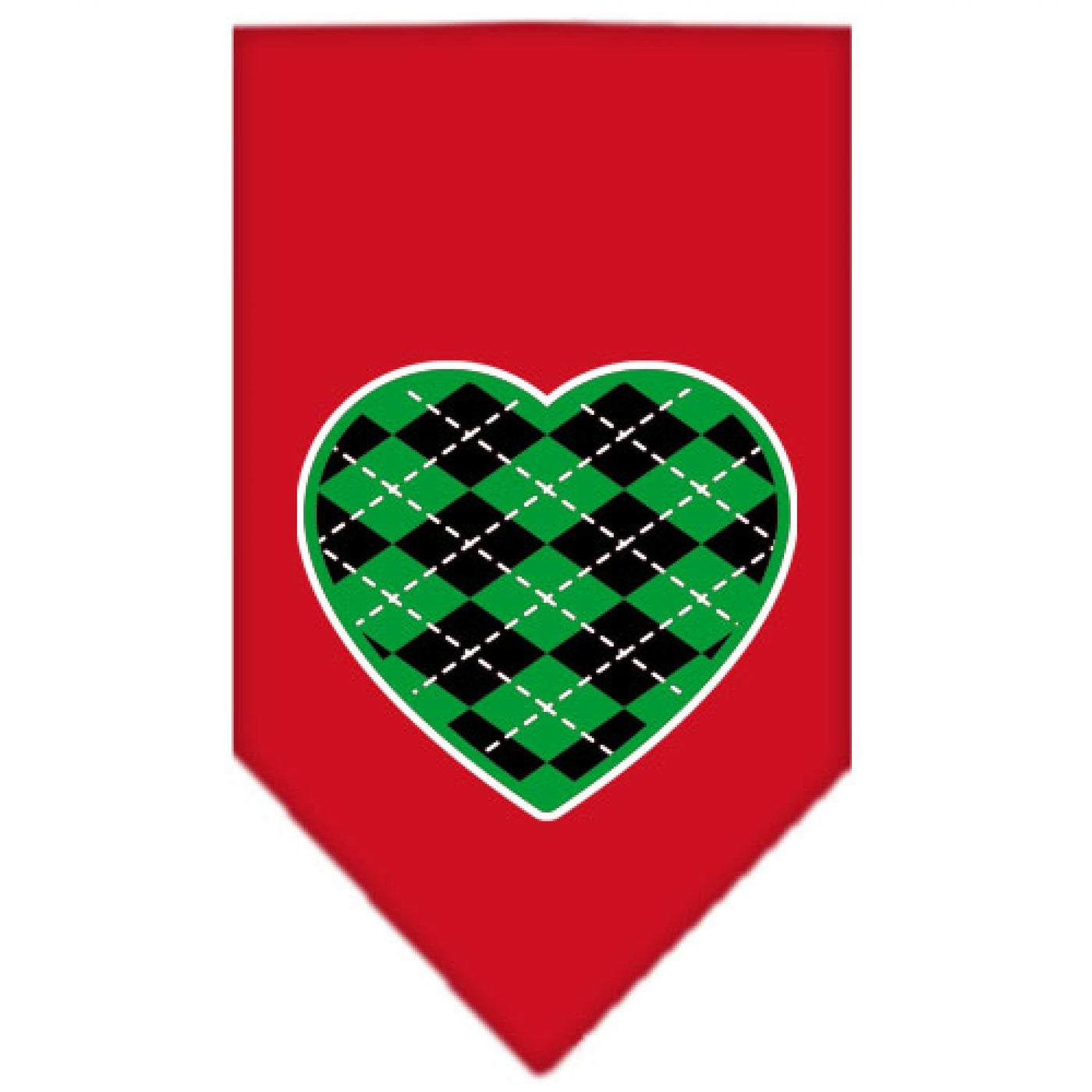 Pet and Dog Bandana Screen Printed, "Green Argyle Heart" Red Small