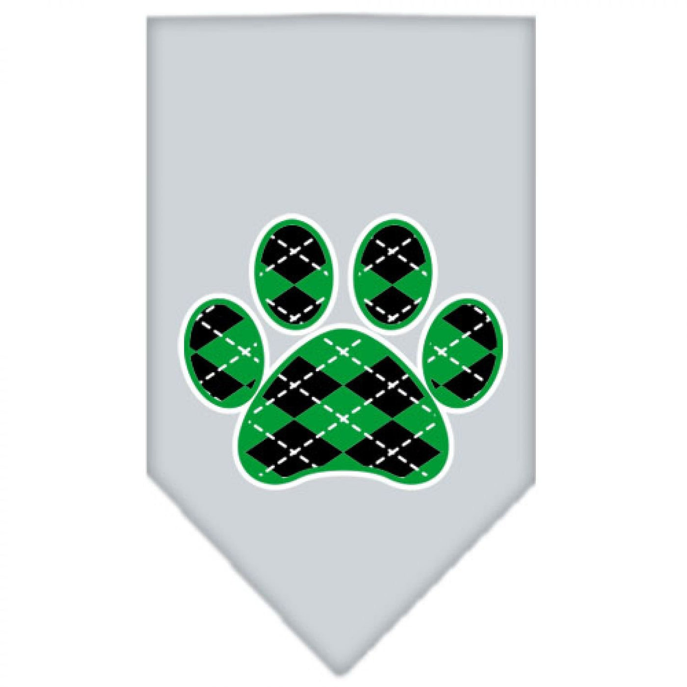 Pet and Dog Bandana Screen Printed, "Green Argyle Paw" Gray Small