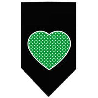 Pet and Dog Bandana Screen Printed, "Green Swiss Dot Heart" Black Large