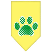 Pet and Dog Bandana Screen Printed, "Green Swiss Dot Paw" Yellow Small
