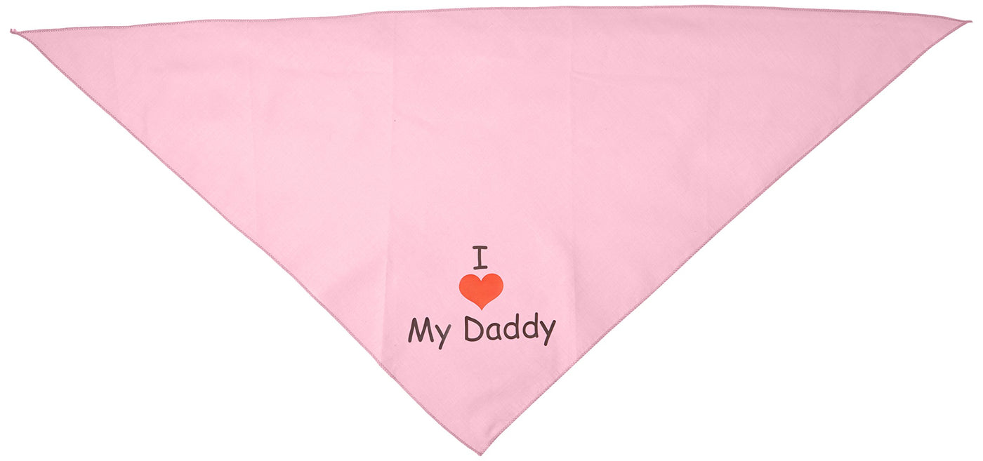 Q: What material is the 'I Love My Daddy' bandana made from?A: The 'I Love My Daddy' bandana is made from 100% cotton, ensuring softness and comfort for your pet.