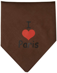 Pet and Dog Bandana Screen Printed, "I Love Paris" Cocoa Small