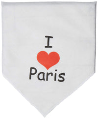 Pet and Dog Bandana Screen Printed, "I Love Paris" White Small