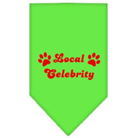 Pet and Dog Bandana Screen Printed, "Local Celebrity" Lime Green Large