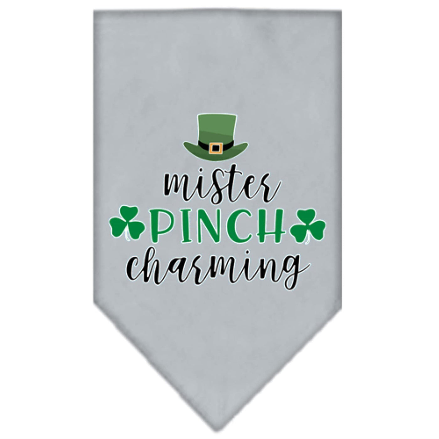 Pet and Dog Bandana Screen Printed, "Mr. Pinch Charming" Grey Large