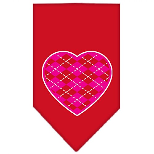 Pet and Dog Bandana Screen Printed, "Pink Argyle Heart" Red Small