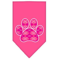 Pet and Dog Bandana Screen Printed, "Pink Argyle Paw" Bright Pink Large