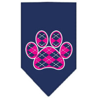 Pet and Dog Bandana Screen Printed, "Pink Argyle Paw" Navy Blue Large