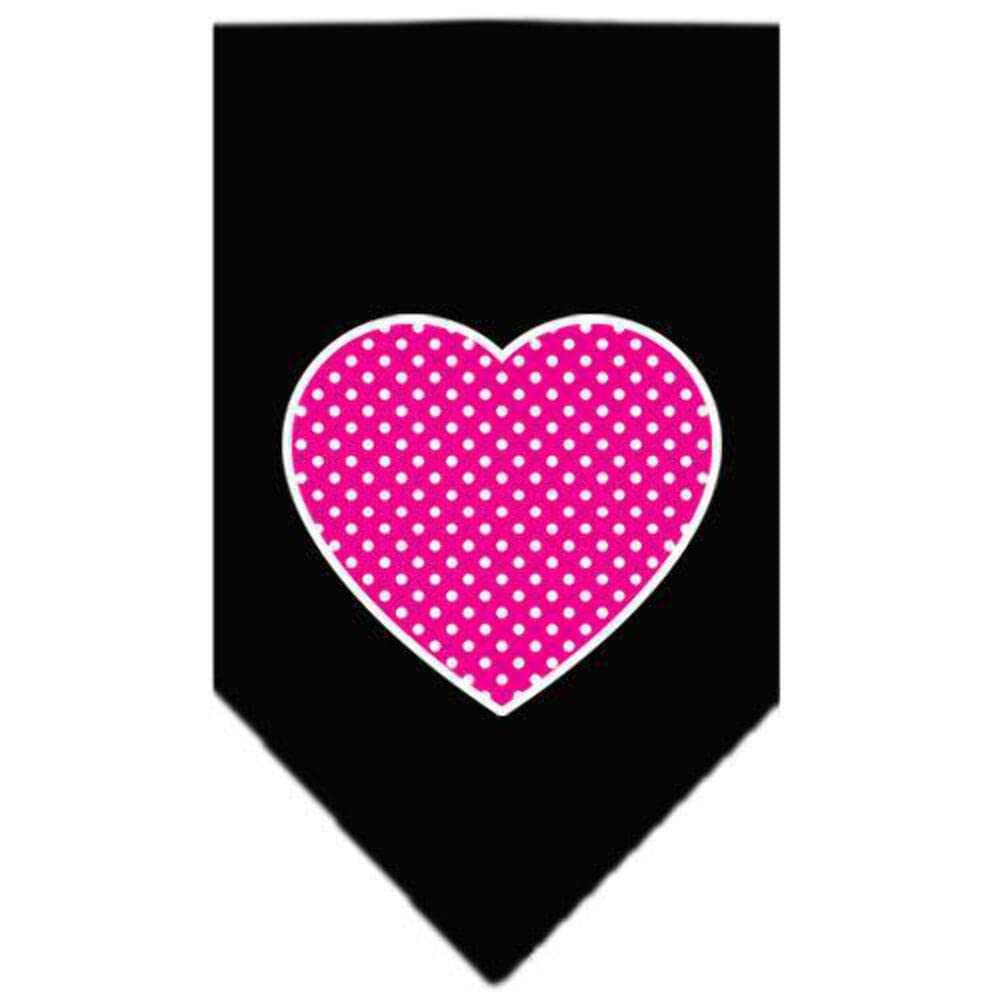 Pet and Dog Bandana Screen Printed, "Pink Swiss Dot Heart" Black Small
