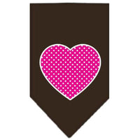 Pet and Dog Bandana Screen Printed, "Pink Swiss Dot Heart" Cocoa Large
