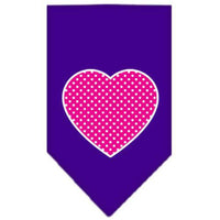 Pet and Dog Bandana Screen Printed, "Pink Swiss Dot Heart" Purple Large