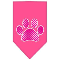 Pet and Dog Bandana Screen Printed, "Pink Swiss Dot Paw" Bright Pink Large