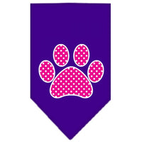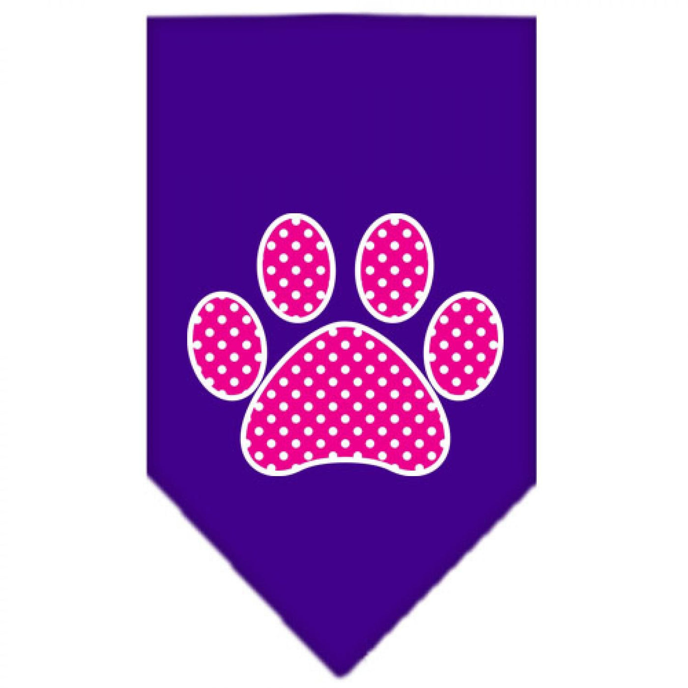 Pet and Dog Bandana Screen Printed, "Pink Swiss Dot Paw" Purple Large