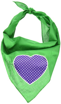 Pet and Dog Bandana Screen Printed, "Purple Swiss Dot Heart" Emerald Green Large