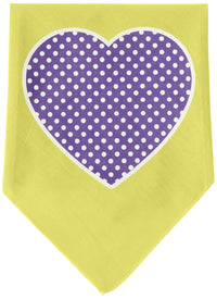 Pet and Dog Bandana Screen Printed, "Purple Swiss Dot Heart" Yellow Large