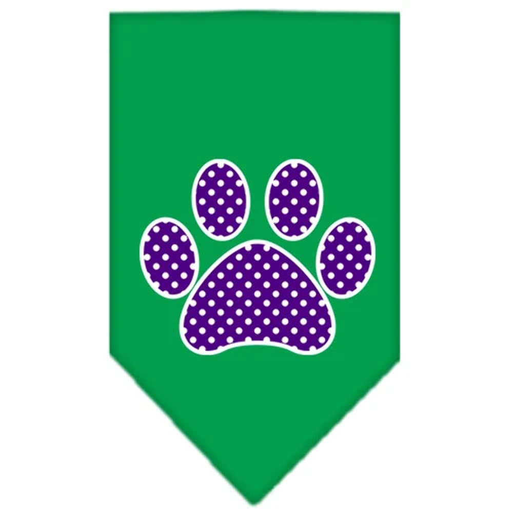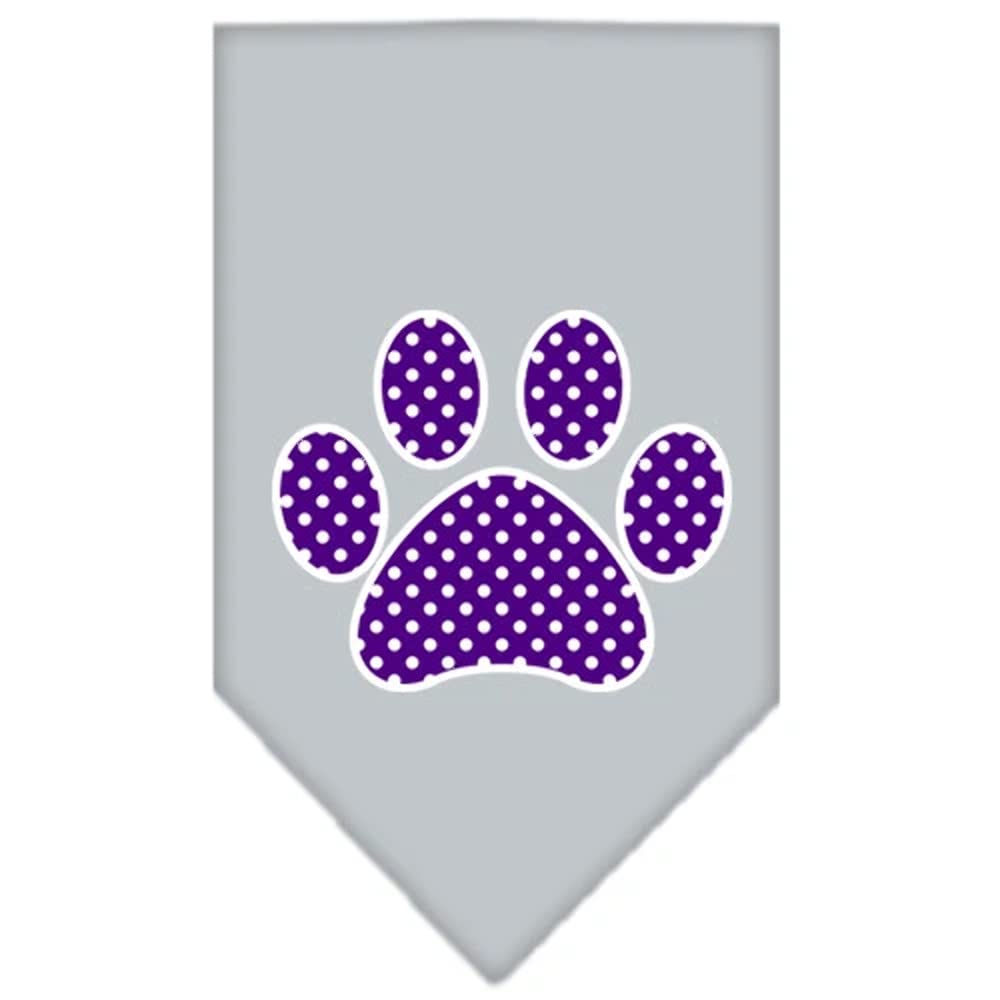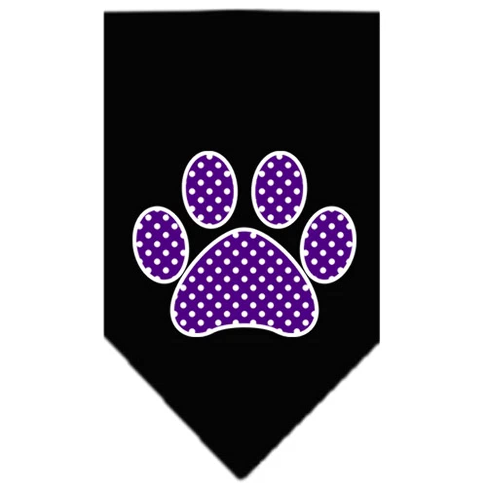 Pet and Dog Bandana Screen Printed, "Purple Swiss Dot Paw" Black Large
