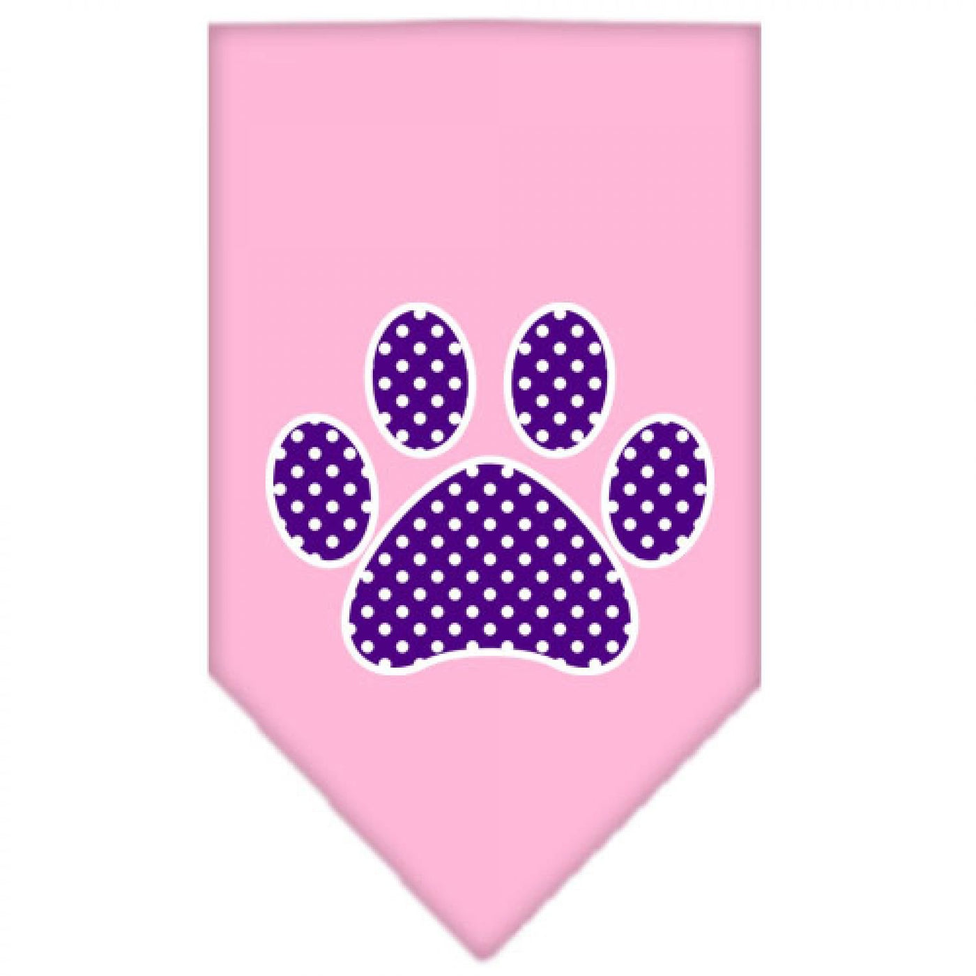 Pet and Dog Bandana Screen Printed, "Purple Swiss Dot Paw" Light Pink Large